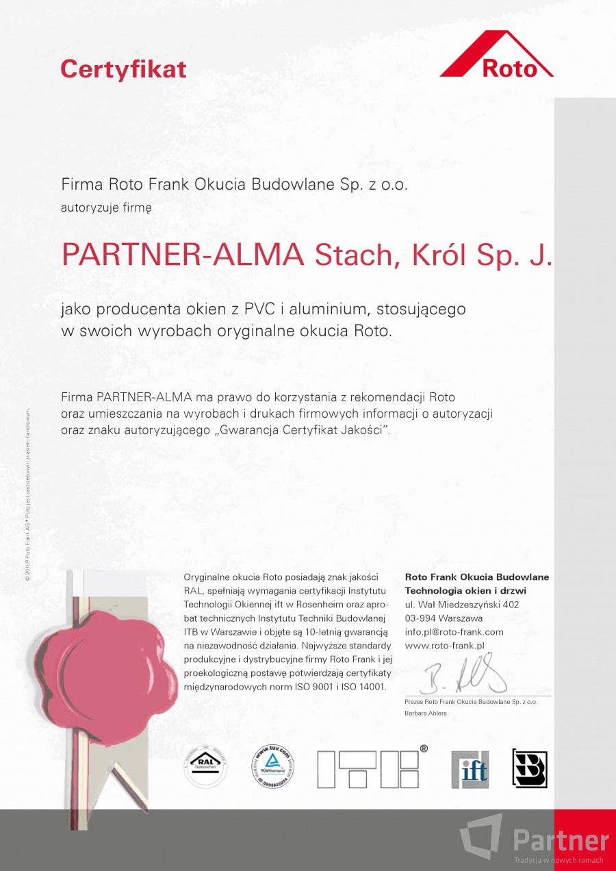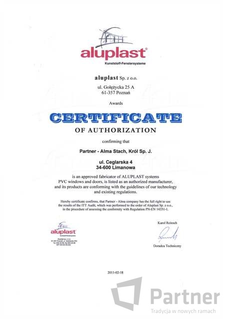 Certificat – Garantit des Profilés sans plomb ALUPLAST.